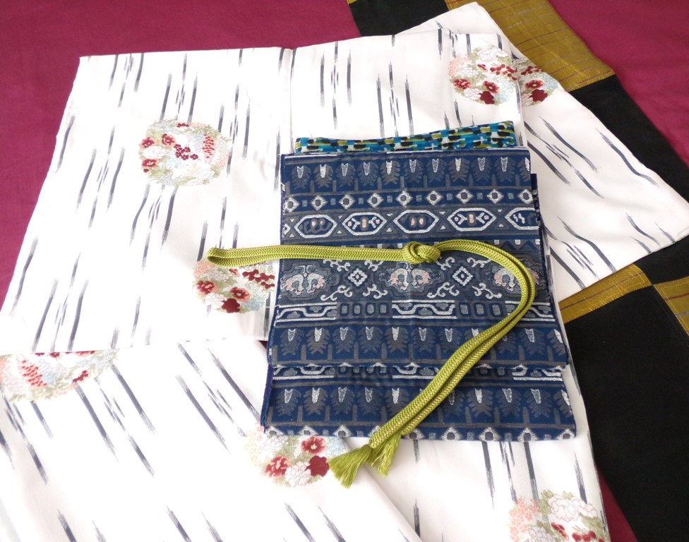 ***帯結びの時に腰紐を1本とクリップ3個(洗濯バサミ等で代用可)を使用しますのでお持ちいただくようお願いします。お持ちでない場合はお貸し致します。***